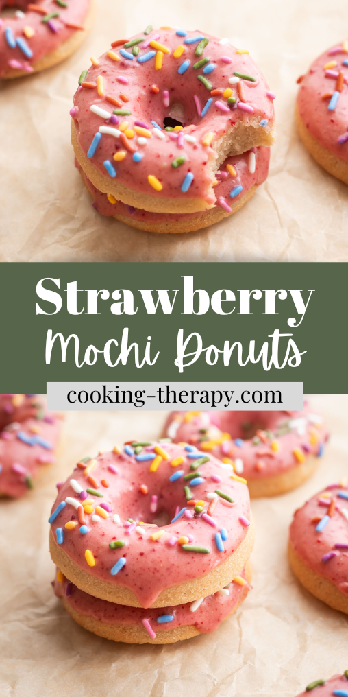 Inspired by the pink donuts you can find at local donut shops, these baked strawberry mochi donuts are both pretty and delicious. They have the perfect chewy texture thanks to mochi flour and are topped with a tart strawberry glaze and fun sprinkles! Included in this post are tips on how to get the perfect donut batter and glaze.